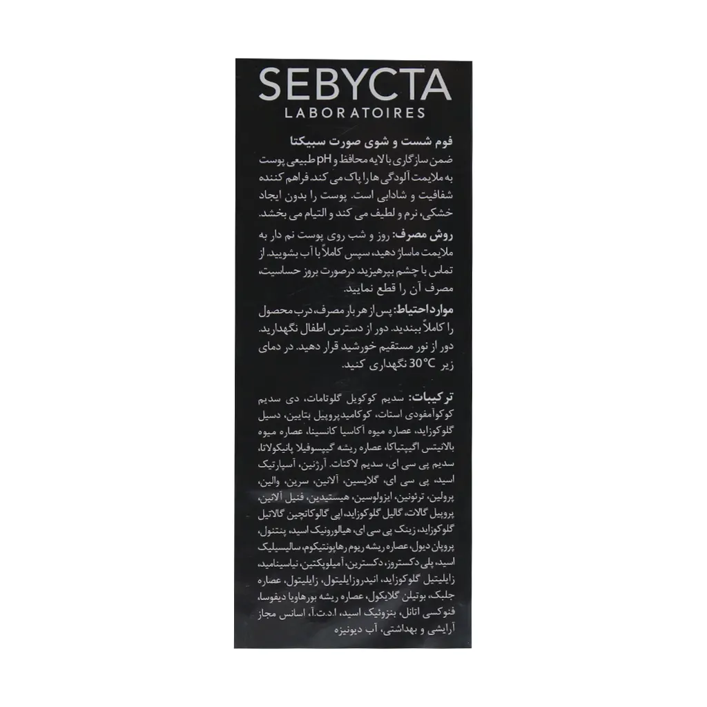 لیست ترکیبات فوم شستشو سبیکتا مخصوص صورت