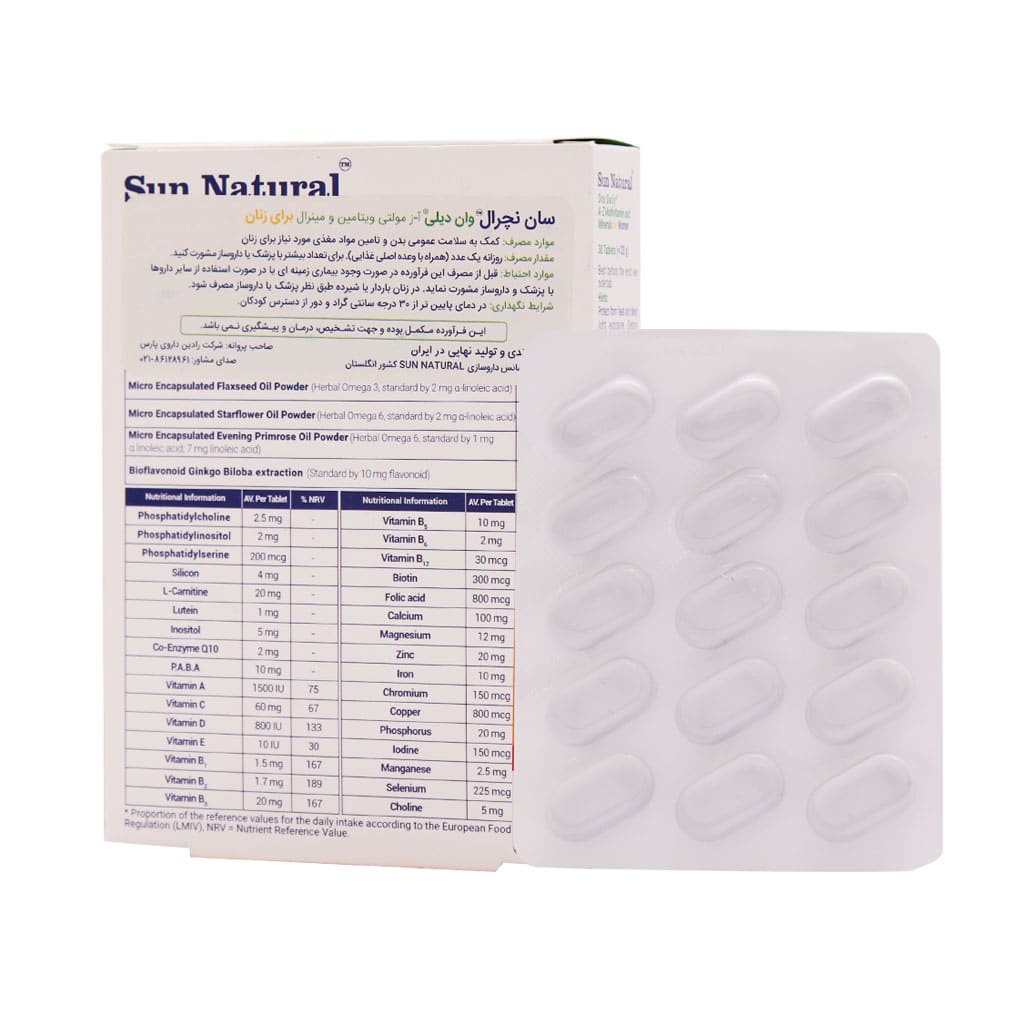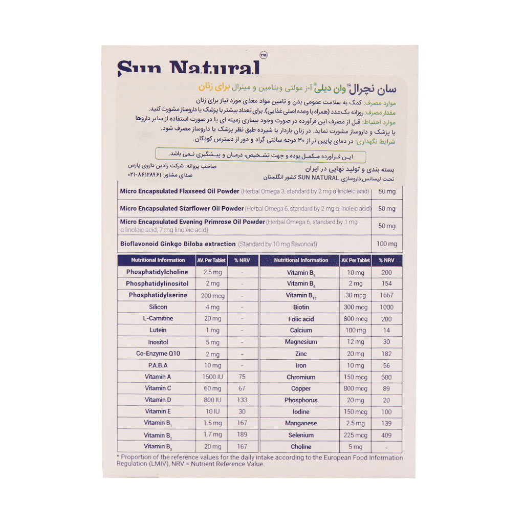 ویژگی های قرص مولتی ویتامین و مینرال وان دیلی بانوان سان نچرال