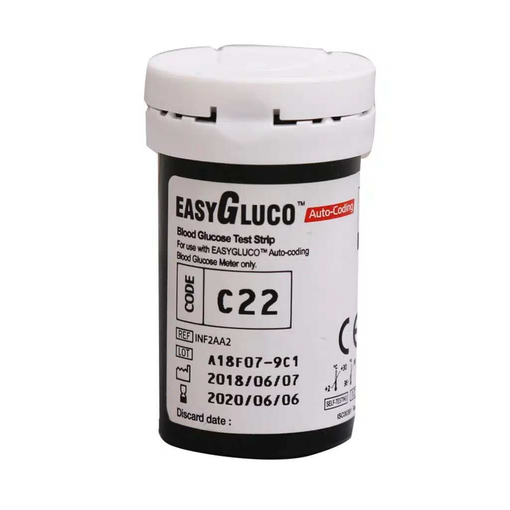 نوار تست قند خون ایزی گلوکو مورد استفاده در تست قند خون EasyGluco برای اندازه گیری قند خون تنها به ۱٫۵ میکرولیتر خون نیاز دارد و در زمان ۹ ثانیه مقدار قند خون را نمایش میدهد که میتوانید با تنظیم شناسه اختصاصی، آزمایش قند خون خود را انجام دهید. در این تست نیازی به وارد کردن دستی کد نوار نبوده و شناسایی نوار تست به صورت تمام اتوماتیک توسط خود دستگاه انجام میشود. به وسیله این دستگاه قند خون میتوانید ثبت وضعیت غذا و دارو در زمان آزمایش را مشخص نمایید. این محصول با بسته بندی غیر قابل نفوذ و ضد ضربه، دارای قابلیت جابهجایی و استفاده بسیار راحت از دستگاه را امکان پذیر کرده است. پس از قرار دادن نوار داخل دستگاه به یک قطره خون معادل ۱٫۵ میکرو لیتر نیاز است. برای اندازهگیری تست لازم نیست که خون روی شیار نوار قرار بگیرد و کافی است انگشت به نوار چسبانده شود تا خون روی آن به داخل شیار کشیده شود. تاریخ مصرف این نوار ۳ ماه پس از باز شدن درب پلمب شده بسته بندی نوار تست قند خون است.