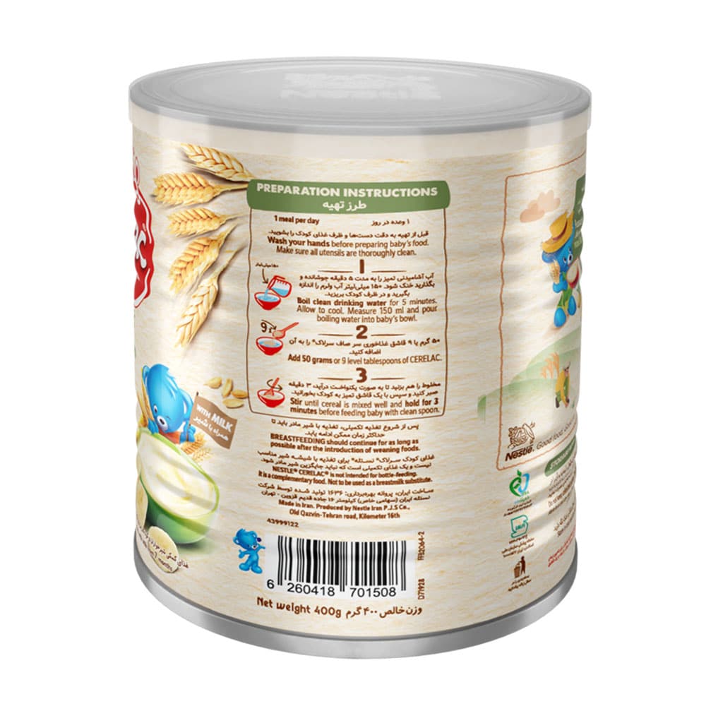 سرلاک گندم و موز به همراه شیر نستله مناسب تغذیه با قاشق است. بسته به سن کودک، تغذیه روزانه یک تا 2 وعده سرلاک لازم است مگر اینکه پزشک کودک روش دیگری را پیشنهاد داده باشد. مصرف سرلاک گندم و موز به همراه شیر نستله را ابتدا با یک قاشق غذاخوری سرلاک در چهار تا پنج قاشق غذاخوری آب شروع کنید و به تدریج مقدار آن را به یک وعده کامل افزایش دهید.